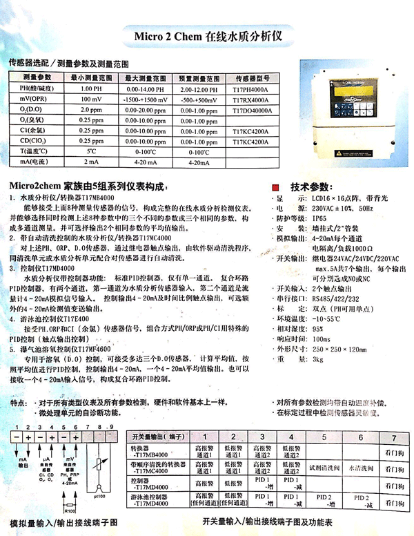 能接受余氯、二氧化氯、PH/ORP等多種傳感器信號,同T17KC4400傳感器構成余氯/二氧化氯在線檢測儀表,可同時選擇檢測三個相同或不同的參數(shù),并可選擇2個相同參數(shù)的平均值輸出。